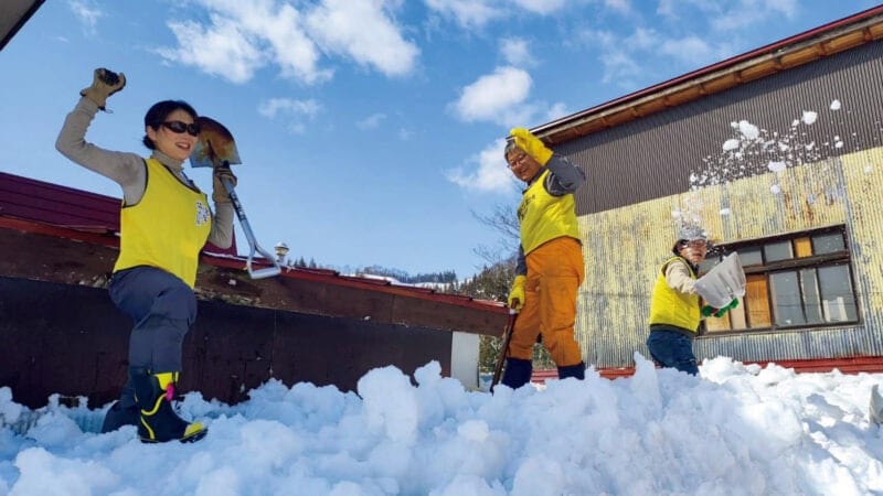 山形県西川町ではお助け隊として、雪かきや栗拾いを。「この年は雪が少ないと聞いて驚きました」。