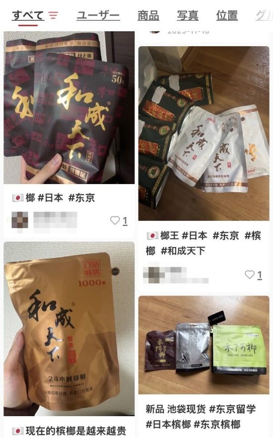 さらに中国SNS「小紅書」を調べると、「日本 ビンロウ」と検索すると、実際に販売しているアカウントが多数あった。