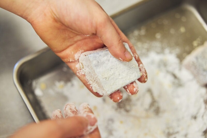 工程はとってもシンプル。まず、食べやすい大きさに切った鰆は、醤油、酒、おろし生姜で下味をつけて30分ほど置いておきます。その後は片栗粉をまぶし、170度の油で5分ほど揚げます。