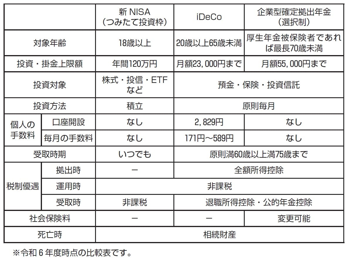 ハイブリッド年金(給与の一部を掛金に回すことで、税金や社会保険料を抑えながら老後資金を作れる「選択制企業型確定拠出年金」の通称)以外にもNISA、iDeCoなど利用する制度で悩む方も多いでしょう。これらの制度は目的が異なるため、目的が同じもの同士での比較検討が必須です。本記事は、松本千賀子氏の著書『会社員が知らないともらいそびれる4,000万円の話』(ロギカ書房)より、NISAやiDeCoについて詳しく解説します。