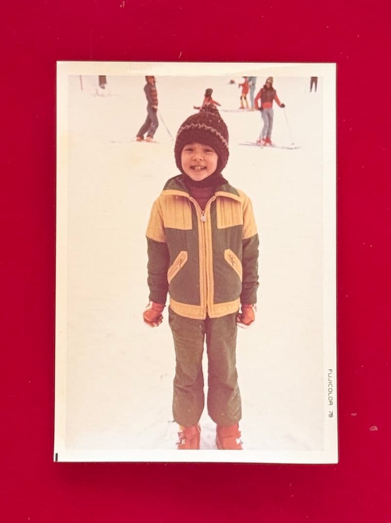 冬の休みの間に少し片付けをと思い立ち、文房具や便箋と封筒などこまごまとしたものをしまっている引き出しに手をつけました。奥の方から幼い頃の写真が何枚か出てきました。おそらくなにかの雑誌の取材の時にアルバムからはがしてまとめていたものでしょう。茶色の毛糸の帽子、緑色と黄色のスキーウェアとオレンジ色のスキーグローブに赤いスキーブーツをはいています。母がわたしに選んだものの影響なのかもしれませんが、幼い頃から緑色が好きで、緑色のジャージを着てベランダで笑っている写真もありました。今と色の好みがちっとも変わっていません。