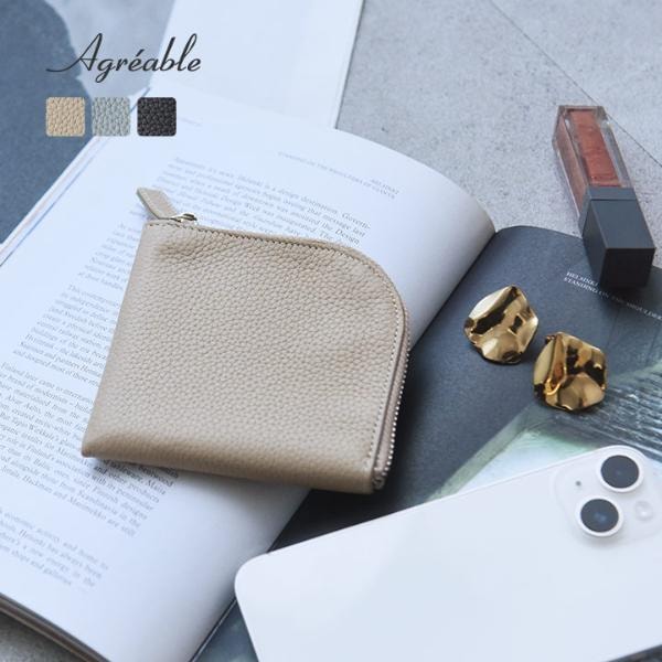 ⇒フラットで嵩張りにくい 牛革 L字型ウォレット ミニ財布/Agreable アグレアーブル