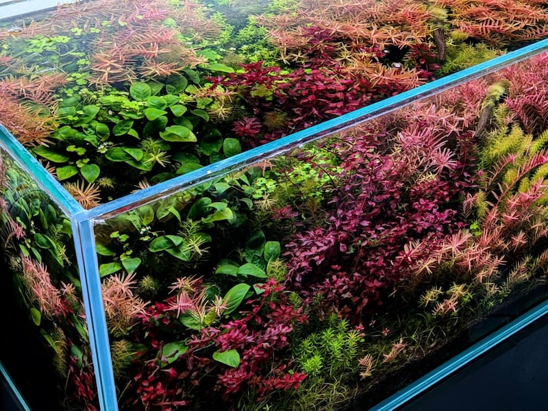 赤や緑の葉、個性的な模様。水流に揺れる柔らかな動きと、その間を縫うように泳ぐ宝石のような魚たち。うっとりと見惚れていると、ここが部屋の中であることを忘れてしまいます。没頭しすぎて抜け出せなくなるほどの、凄まじい中毒性があります。