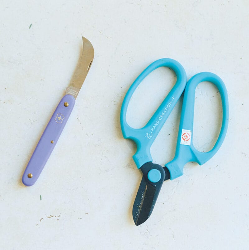 愛用の剪定ばさみとフローリストナイフ。