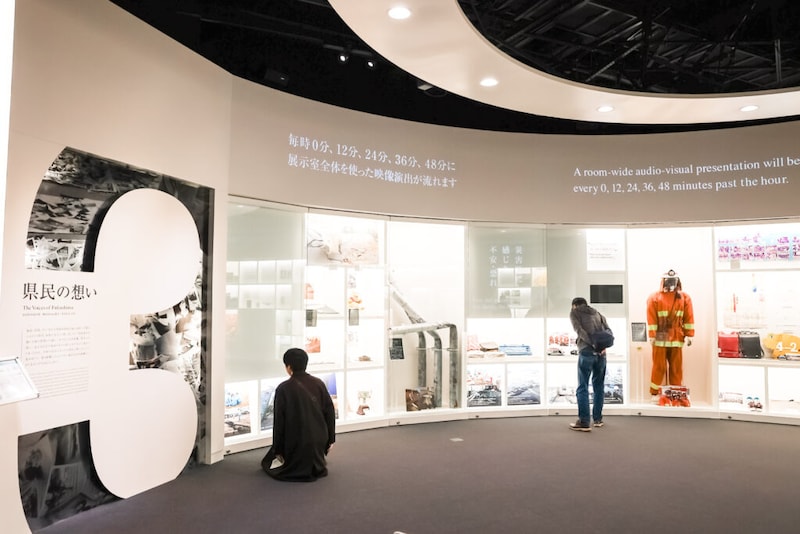 ツアー2日目は、東日本大震災・原子力災害伝承館からスタート。世界でも類を見ない複合災害の記録と教訓を伝え、防災や復興に役立てることを目的に、2020年に開館した県立の施設です。一行はシアター鑑賞や館内展示の見学、地域の方による語り部講話に参加。震災前の暮らしや復興の過程を知り、町の歴史の一部である震災と原子力災害への理解を深めました。