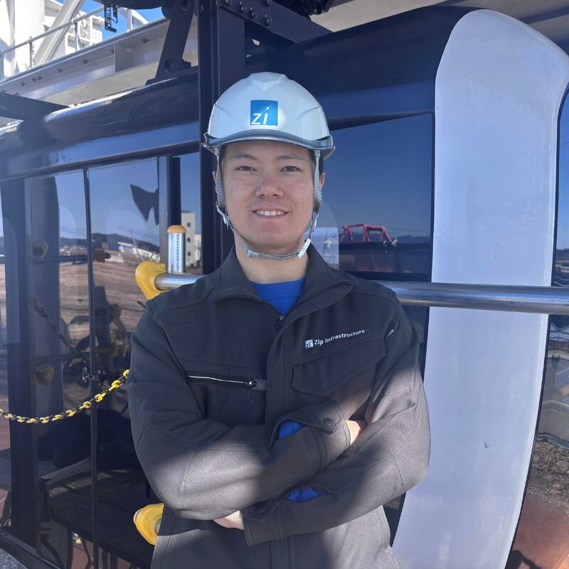 〈プロフィール〉 兵庫県神戸市出身。北海道大学在学中はアメリカンフットボール部に在籍。新卒でJR東日本入社後、中央線グリーン車導入の推進に従事する。その後、フォースタートアップス株式会社でスタートアップ企業の支援に従事後、Zip Infrastructure株式会社に入社。現在は福島県南相馬市内に整備の福島試験線の責任者として、浜通り内をメインに活動している。