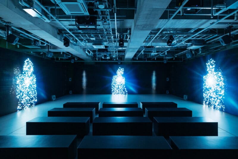 クリスタルLEDスクリーンに映し出される精細な映像、音の振動を直に身体に伝えてくれるフロアー、そして360°リアリティオーディオから生まれる音声によって、TM NETWORKの楽曲が持つ世界観を表現。