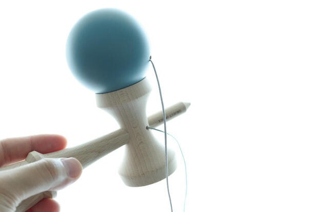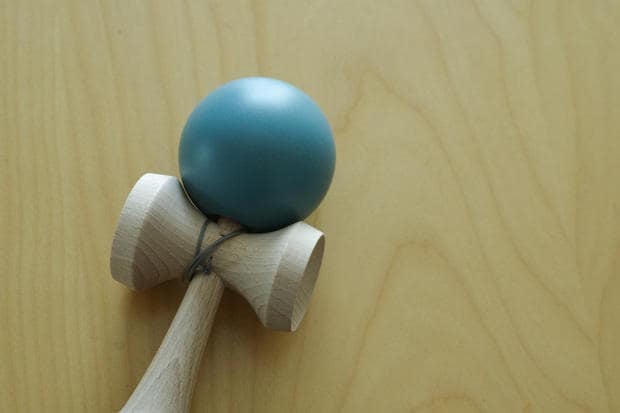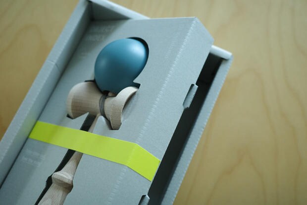 けん玉と言えば「赤い球」というイメージを真っ向から崩すことによって表現されるシックなアースブルーのマットな質感。クラシックなスタイルでありつつも洗練されたフォルム。