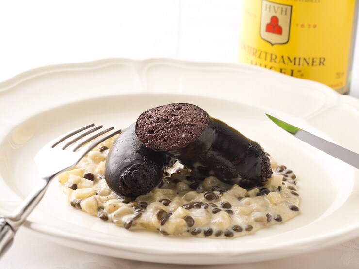 『ブーダン・ノワール レンズ豆とリンゴ・バナナのラグー』