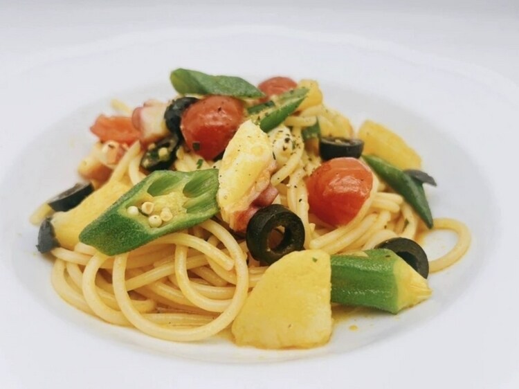 『タコとオクラ、オリーブのアーリオ・オーリオスパゲッテ』