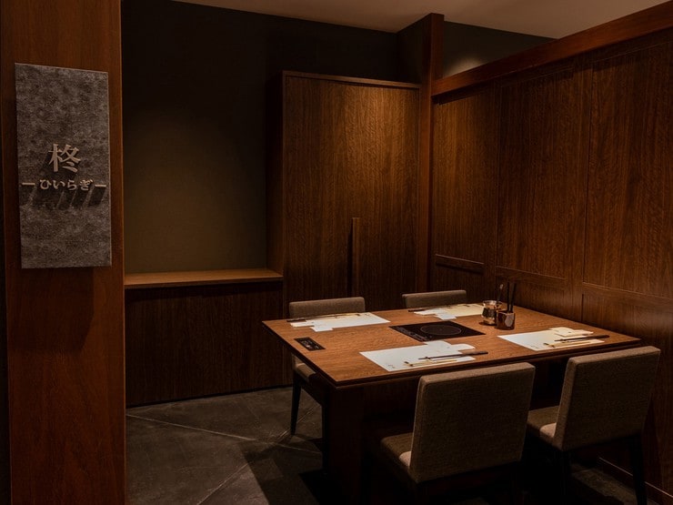 ブラウンの木目調でまとめられたシックな店内は、中庭の緑も相まって落ち着いた雰囲気です。プライベート感あふれる広々とした個室は6部屋も完備され、大切な会食やお祝いごとなど特別な日を彩るのにぴったりです。くうてん限定のコースもあり、本店とは一味違ったメニューが楽しめます。