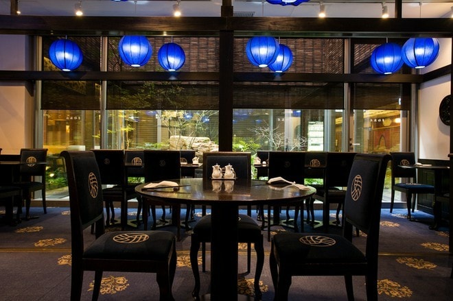高級感を感じさせるスタイリッシュな空間は、店内を見守る鮮やかな青の照明の姿が印象的。隣の席との間隔が広く設定されているので、ゆっくりと過ごせます。さらにゆったり会話が楽しめる半個室もあります。「中華に合うワイン」をコンセプトにつくられた『華都飯店オリジナルワイン』や紹興酒も充実。