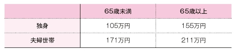 年金だけで生活している人の場合、住民税非課税になるボーダーラインの年金収入は、独身の方は、65歳未満が105万円、65歳以上が155万円です。夫婦世帯の方は、65歳未満が約171万円(※)、65歳以上が211万円です。