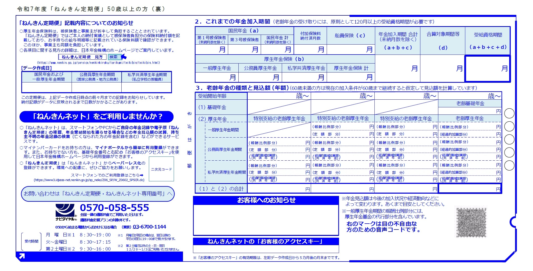[図表2]令和7年度「ねんきん定期便」50歳以上の方(裏) 出典:日本年金機構