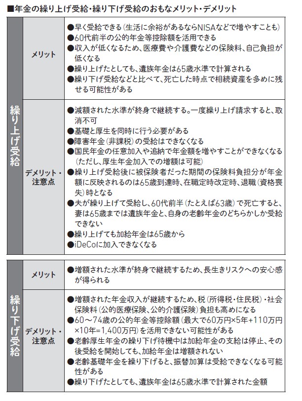 [図表1]年金の繰り上げ受給・繰り下げ受給のおもなメリット・デメリット 出所:『増やしながらしっかり使う 60歳からの賢い「お金の回し方」』(KADOKAWA)