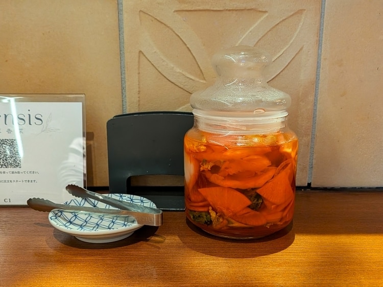 ちなみにテーブルの上には、自家製のピクルスも。自由に小皿に取り楽しむことができます