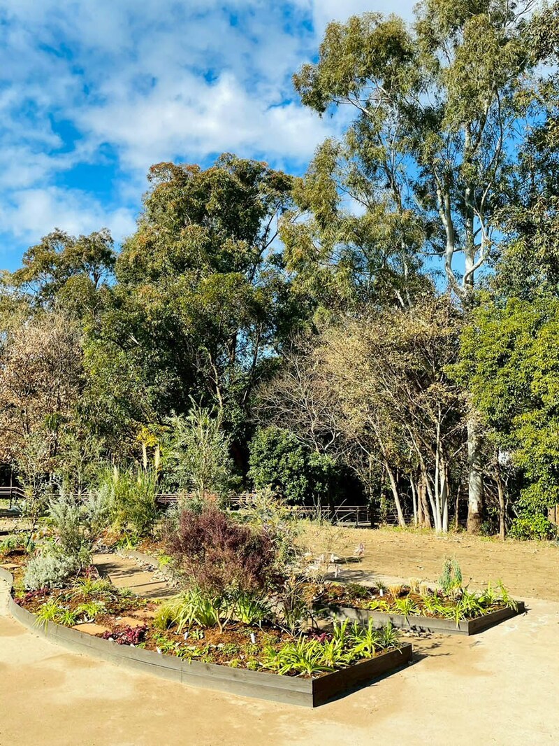 単体として完結する庭ではなく、周辺環境と関係を結ぶことで、公園全体に小さな発展や気づきを生む場所をイメージしました。島のシグニチャーであるユーカリ樹林を主役とする前景構成に、回遊ステップや草木による見え隠れを重ね、園内に不足がちな遊具的な体験性やヒューマンスケールの空間性を補完。熱帯・亜熱帯植生や豪州庭園との調和に配慮した樹種で園内の一施設として風景の連なりを意識しました。眺望の制約となりがちな前面ベンチや照明ポールも、視点場や景色のリズム要素として読み替え、人の行為で意味が広がる場所となることを意図しています。