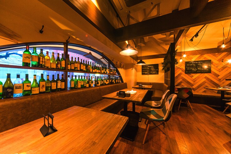 1階はバールスペースやカウンター、2階は開放的なダイニングと、シーンに合わせた過ごし方が可能。デートディナーにぴったりな落ち着いた席から、友人と楽しめる気軽なワインと料理まで幅広い利用ができます。特別な時間を過ごしたい夜にもオススメの一軒です。