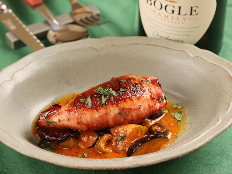 イタリアの定番料理でもあるリピエノを独自に昇華させた『真イカのリピエノ イカゴロのソース』。新鮮な真イカを使用したシェフのスペシャリテです