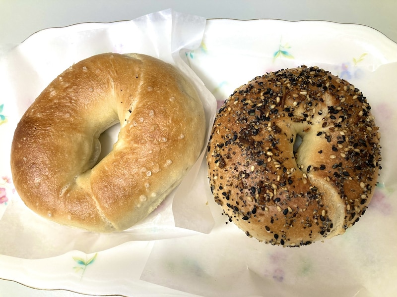 ガーリック、ポピーシード、胡麻、岩塩などをまぶしたニューヨークの代表的ベーグルは、ガーリックがしっかりと効いたパンチある味わいです。