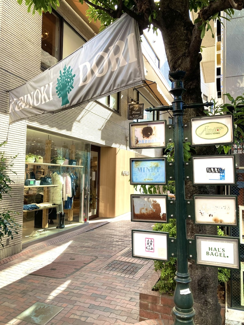 お店は自由が丘駅の南口を出て徒歩約2分という便利な場所にあります。「KURINOKI通り」という通りに入ってすぐの場所です。通りの入り口にお店の看板が出ていました。