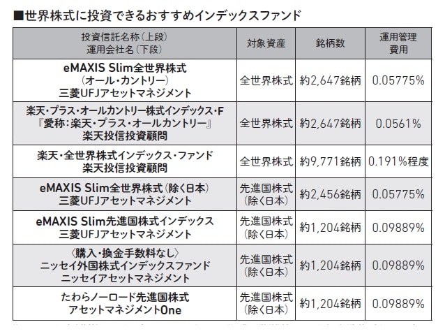 コストが低く抑えられたおすすめの世界株ファンドは[図表3]のとおりです。