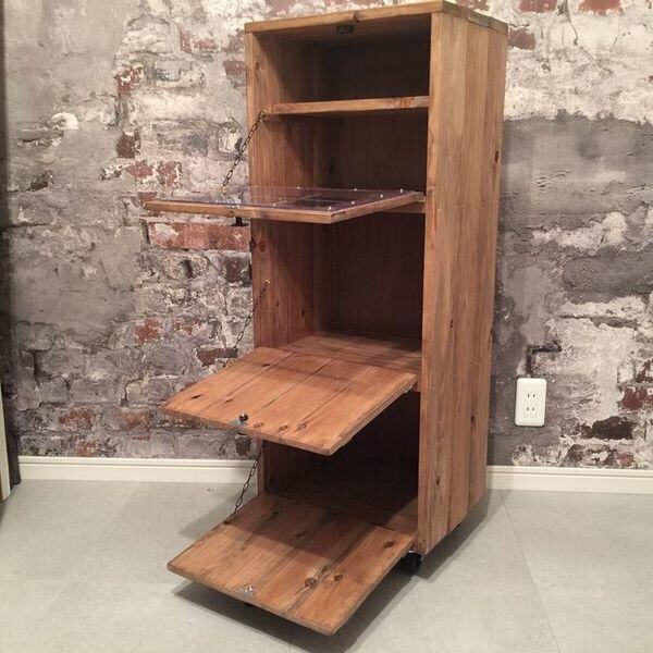 11) 最後にキャスターを角4カ所に取り付けて完成!! 写真は扉をすべて開いたところです。