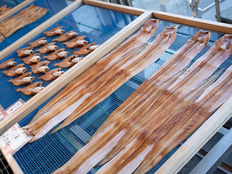 それが文化庁の「100年フード」にも認定された「若狭おばま醤油干し」。これは、近海で獲れた鮮度抜群のサバや小鯛、ハタハタ、アジ、アナゴなど地元で揚がるさまざまな魚を、醤油だれにさっと漬けて干したもの。