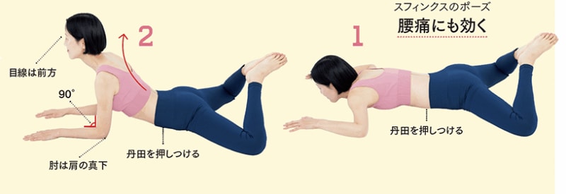 寒い日や腰まわりの冷えを感じるときにおすすめ。丹田を床に押し付けて呼吸を繰り返すことで、腰まわりの血流がよくなり、ポカポカに。