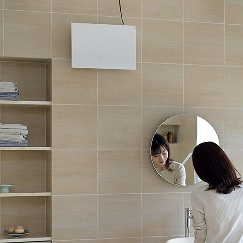 「薄型のパネルヒーターで、壁掛けでも使えます」。
