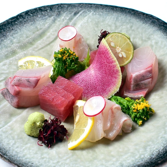 日本酒と合わせる和食も豊富にラインアップ『お造り三種盛り合わせ』