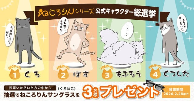 今回はそんな「ねころりんシリーズ」の公式キャラクターを決定すべく、「ねころりんシリーズ公式キャラクター総選挙2026」を行います。応募期間は2026年2月20日(金)~2026年2月28日(土)まで。