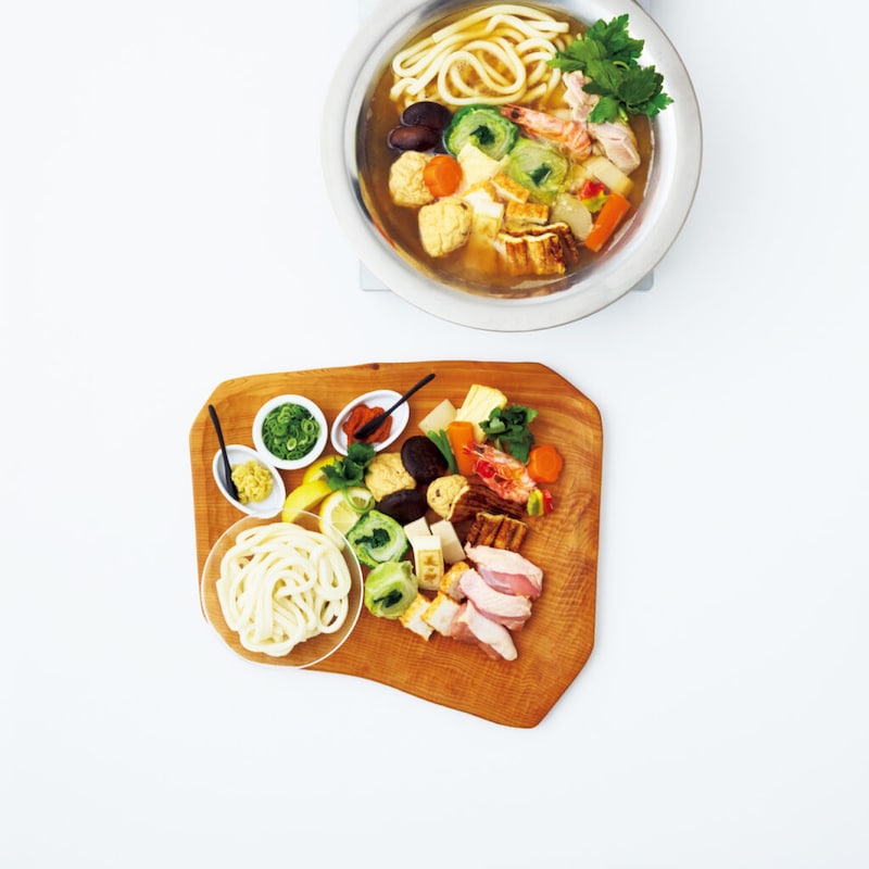 東京から『美々卯』が消えて久しい。寒い日は時折、あのうどんすきを懐かしく思い出す人もいるに違いない。赤い漆の器や小さな貝の杓子(?)でいただく、お上品なうどんすきだったなぁ。聞けば、もう20年も前から通信販売をしているというではないか。そうだったか。じゃあ、はりきって取り寄せてみようじゃないかということで、〝おうち美々卯〟開店となった。具材も薬味もぬかりなく揃っているから、すぐに鍋を囲めてありがたい。黄金色のおいしい出汁、リッチな具材、そして、太打ちのうどんがたっぷり。ボリューム満点で大満足だ。最近では、うどんすきにぴったりの鍋も絶賛販売中である。鍋肌にうどんを添わせて取り出すと、スムーズにいくそうだ。つまり、つゆハネしない工夫がされている鍋だ。『美々卯』は、どこまでもうどんすきのおいしさを追求し続ける。それでこそ。