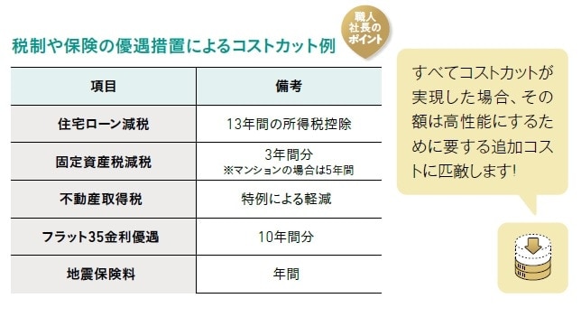 省エネ基準を満たしたことで住宅ローン減税を受けられるほかにも優遇措置があります。その主な内容は[図表3]のとおりです。その額は、建築時に高性能にするために要した追加コストを上回るくらいを期待できるものです。長期優良住宅の認定を受けた建売住宅も出てきています。一般住宅に比べて物件価格が割高になりますが、選択肢に入れるとよいでしょう。