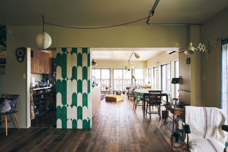 「とにかく持ち物が多くて。アンティークの家具や古道具、旅先から持ち帰った民芸品が大量にあり、そういったものを全部飾りたかったので、広い家が条件だったんです。だから古さは想定内。ここはその昔、二戸の住戸を繋いで一戸にした経緯があったらしく、とにかくダイナミック! むしろ古い家だからこその物語に、魅了されてしまいました」