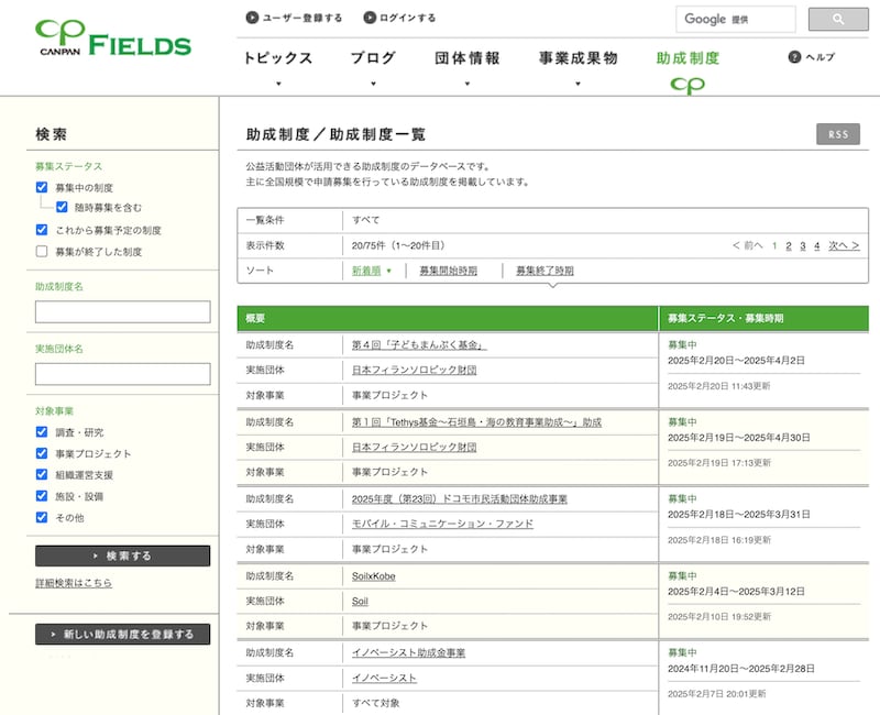 これから募集予定の助成金情報も掲載しているため、幅広く情報収集ができることも利点といえる。