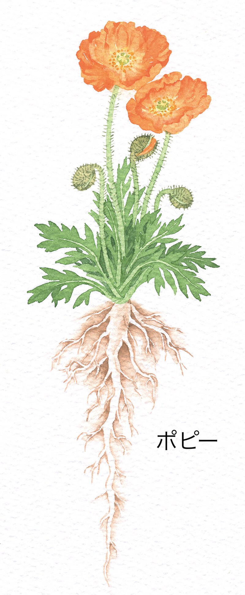 ポピーやセリ科の植物などは、中心の太い根(直根)を切ってしまうと、生育不良になります。一年草タイプでは植え替えも禁物。