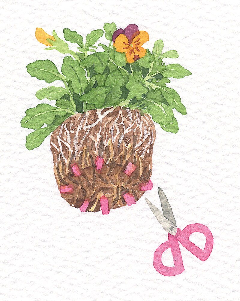 寄せ植えのために、根鉢をサイズダウンさせるには