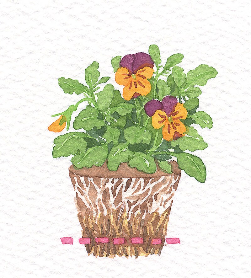 草花を鉢植えにするときは、根のサイズに合った鉢を選ぶのが基本です。根の量に対して、大きすぎる鉢に植えるのは避けましょう。大きめの鉢に植えると、土が深く、土に保持される水分量も多くなり、なかなか乾きません。土が常に湿った状態だと、根が水を求めて伸びる必要がなくなるので生育が緩慢になったり、土の中の酸素が不足して根腐れの原因になったりすることがあります。