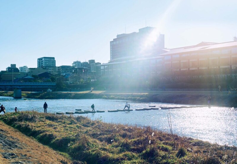 鴨川の東側から巡るなら、京阪鴨東線神宮丸太町駅で下車して南下。西側からなら地下鉄東西線京都市役所前駅で下車して北上がおすすめ。御池通や二条通、丸太町通と短い間隔で橋があるので、東西の行き来も気軽に。もちろん川沿いに下りるのも忘れずに。ベンチでひと休みして、飛び石にチャレンジを。