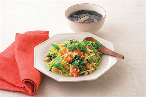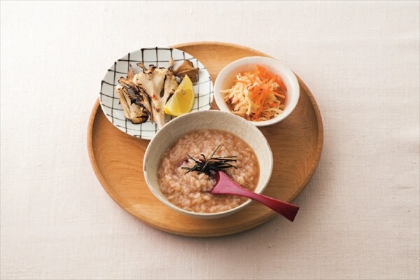 食物繊維とミネラルは豊富な焼きのりとシイタケを使ったスープです。温かいスープをゆっくり食べることで食べ過ぎを防ぐことができます。