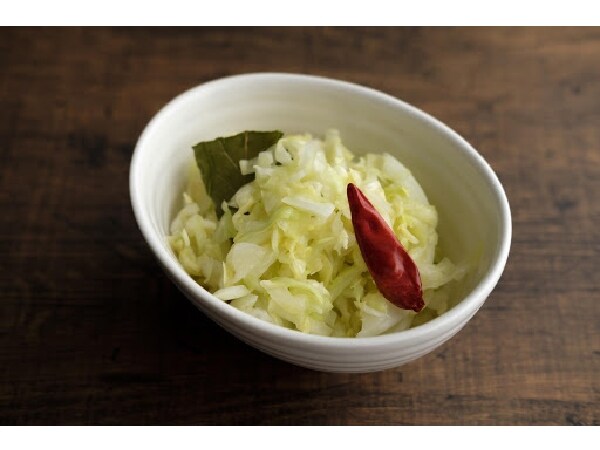 酢が手軽に取れ、血圧が気になる人におすすめの副菜です。キャベツの食物繊維が腸内環境を整えます。冷蔵庫の常備菜として作り置きすれば、野菜不足が気になるときに気軽に食べられます。
