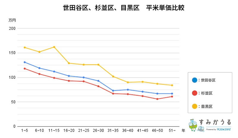 世田谷区、杉並区、目黒区平均単価比較【すみかうる】