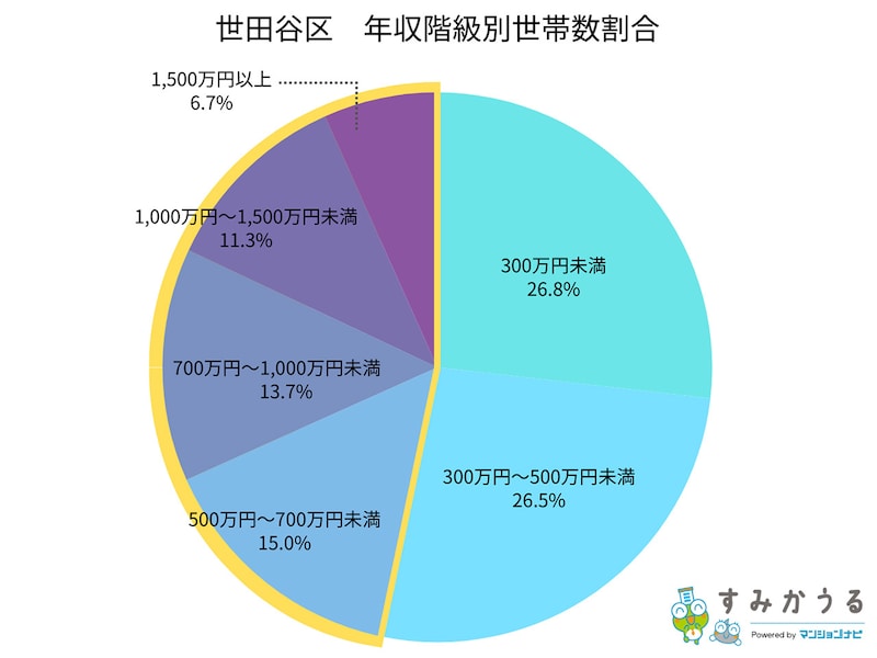 世田谷区年収階級別世帯数割合【すみかうる】(2025年11月時点)