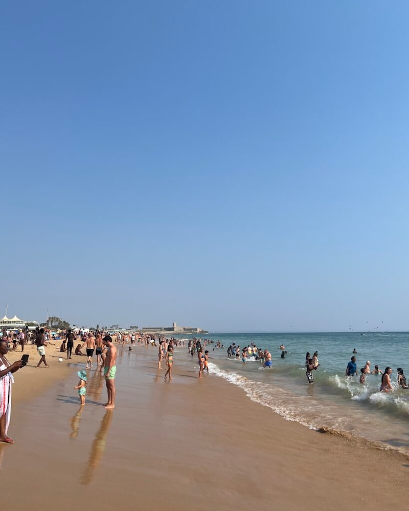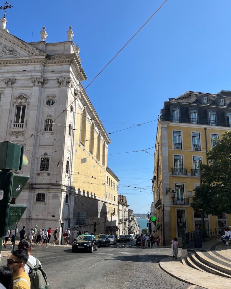 初めてのポルトガル。ロンドンの灰色の空とは打って変わって、日光が気持ちよく降り注いではタイル張りの路面に反射してまぶしい。建物と建物の間からは向こう側の海が見えて、水面がちらちらと白飛びして光っている。日差しを浴び、空気を吸っているだけで少し陽気になってくるような街だった。