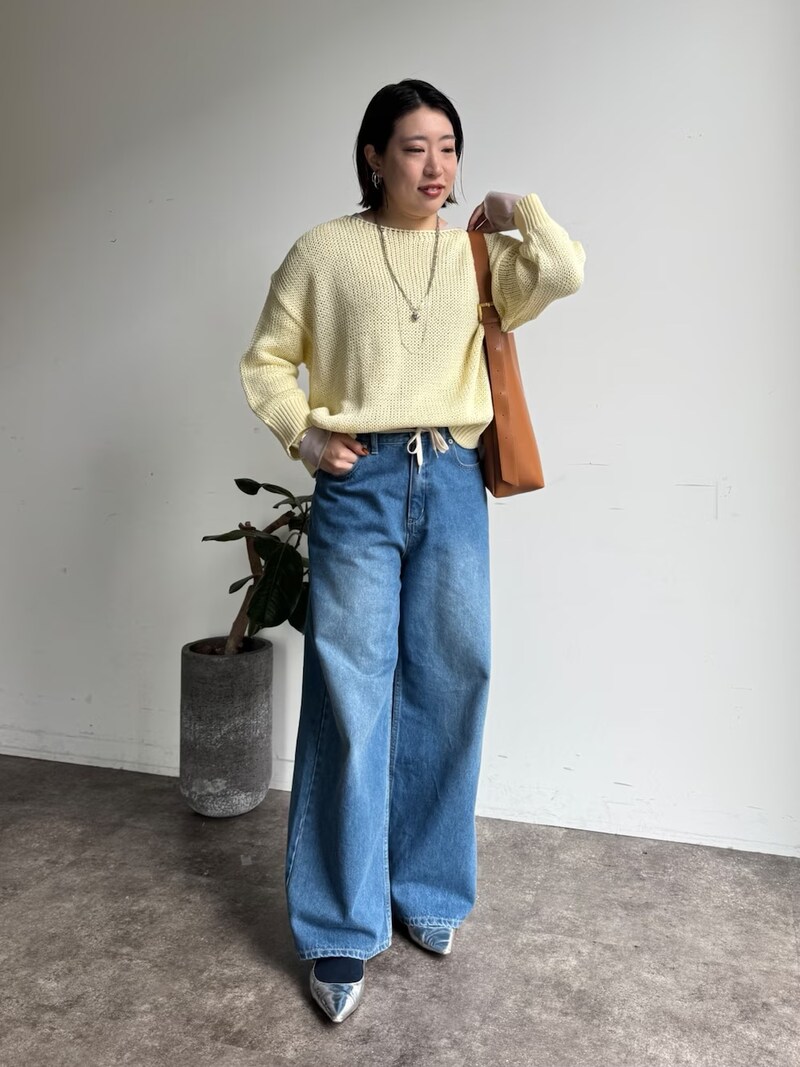 身に着けるだけで気分がぱっと明るくなるような、レモンイエローのニット。カジュアルなアイテムとも相性抜群です。明るいブルーのデニムと合わせると、ぐっとヘルシーな印象に。
