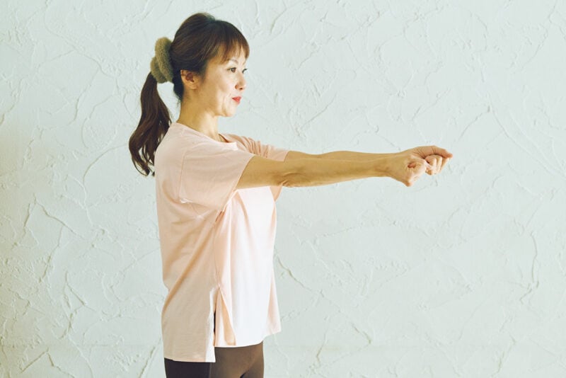 「血流を促進するとともに、腕の裏側(上腕三頭筋)を引き締めます」