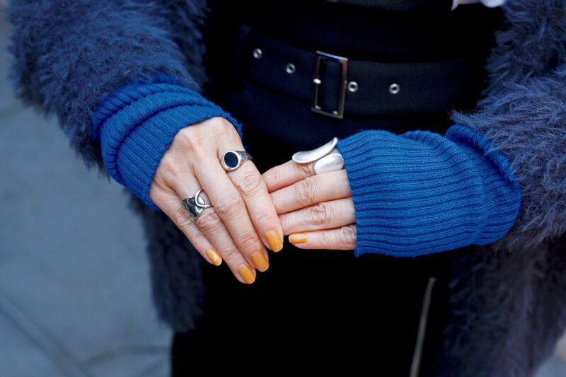 真冬のおしゃれに欠かせないアームカバーで防寒対策もバッチリ。