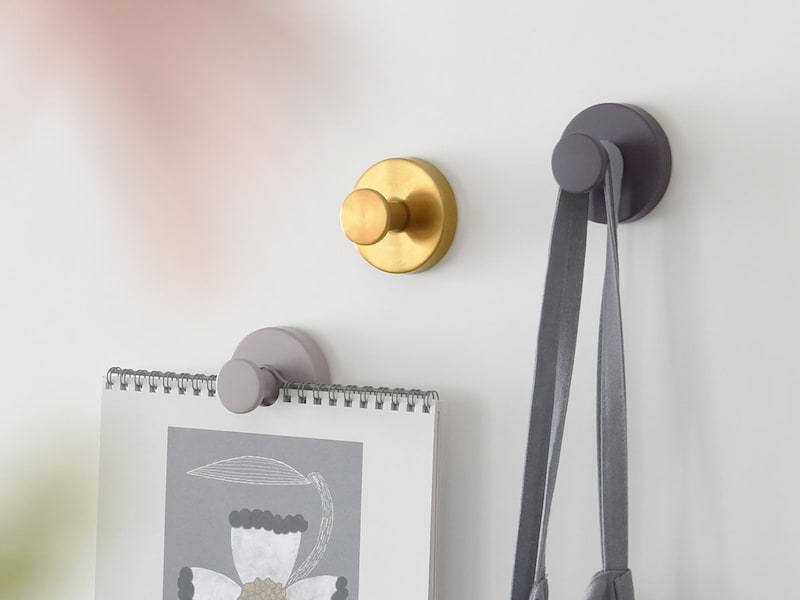 設置する高さ次第で、持ち手の短い掃除用品~着丈の長いウェアまで、耐荷重1.5kgくらい掛けることができます。モノが宙に浮くので、床掃除のプチストレスにもさようなら。ホイッと掛けるだけの「片づけなくてもいい新習慣」のスタートです。