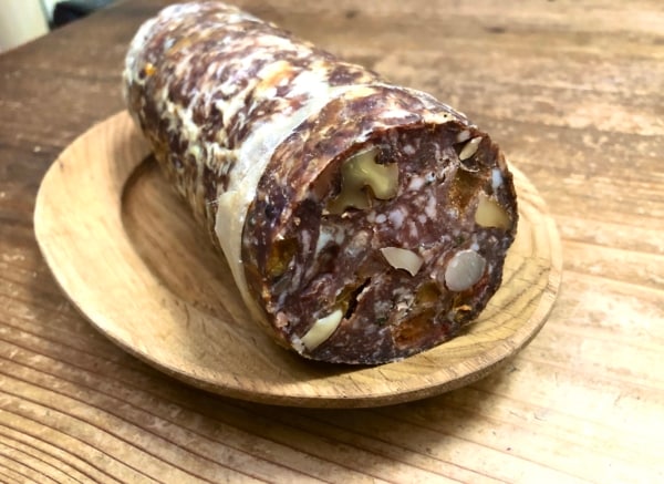 猪サラミ 「おおち山くじら」さんの猪肉を使った加熱サラミ。自家製干し柿入り。